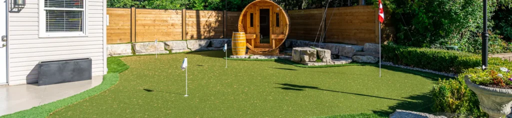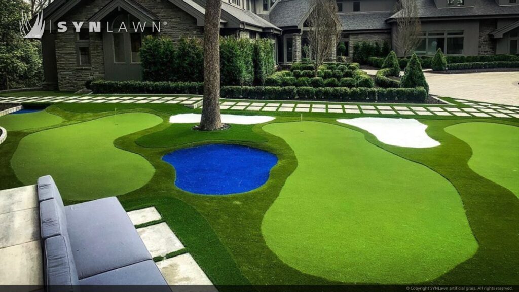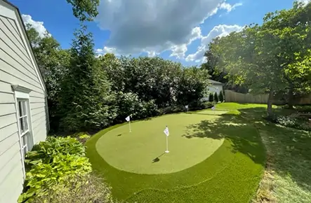 At SYNLawn Cincinnati, we specialize in crafting custom artificial grass putting greens tailored to your preferences. Whether your golf green project is small or extensive, we are here to assist with planning and construction. Plus, our synthetic turf for golf boasts rapid water drainage, ensuring stormy weather will not disrupt your game by flooding the greens.