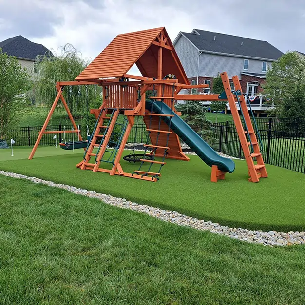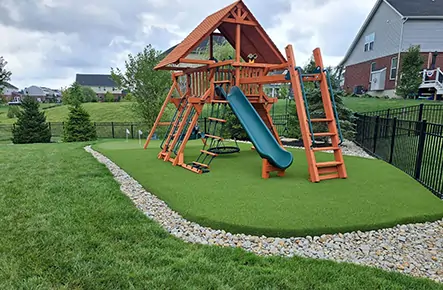 SYNLawn Cincinnati offers premium artificial grass for Cincinnati, OH, playgrounds, providing a safer and more durable surface for children to enjoy. Our synthetic playground turf is engineered to withstand heavy foot traffic, which helps ensure long-lasting performance and minimal maintenance. With it, you can create a vibrant and inviting play area that also helps enhance safety.