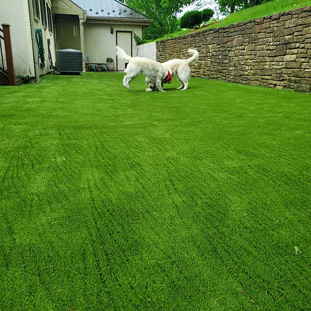At SYNLawn Cincinnati, one of our specialties is providing high-quality artificial dog and pet turf solutions for pet owners and businesses in Cincinnati, OH. Our pet-friendly synthetic grass is designed to withstand the demands of active pets while ensuring a safer and more hygienic outdoor environment. Produced with advanced drainage systems and odor-controlling technology, our artificial dog turf helps eliminate common issues like muddy paws, odors, and the need for constant maintenance. Whether for residential yards, dog parks, or veterinary facilities, synthetic pet grass from SYNLawn Cincinnati offers a durable, low-maintenance solution that helps keep both pets and their owners happy and satisfied.